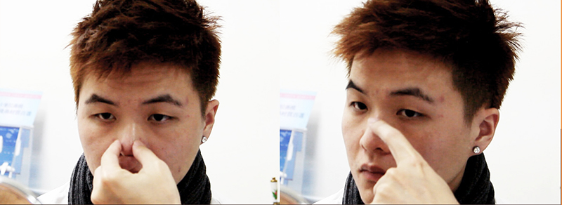 雖然山根有些許改進,不過蓮霧鼻卻一樣嚴重,臻品絕色先用三段式隆鼻的方式來調整