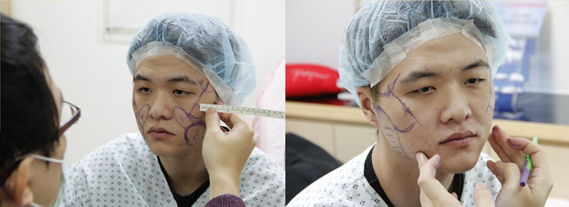 L形削顴骨手術,手術先由口內黏膜切口進入,取下欲縮減的骨頭後再從耳前3公分左右的小洞切開切多餘骨頭