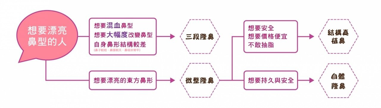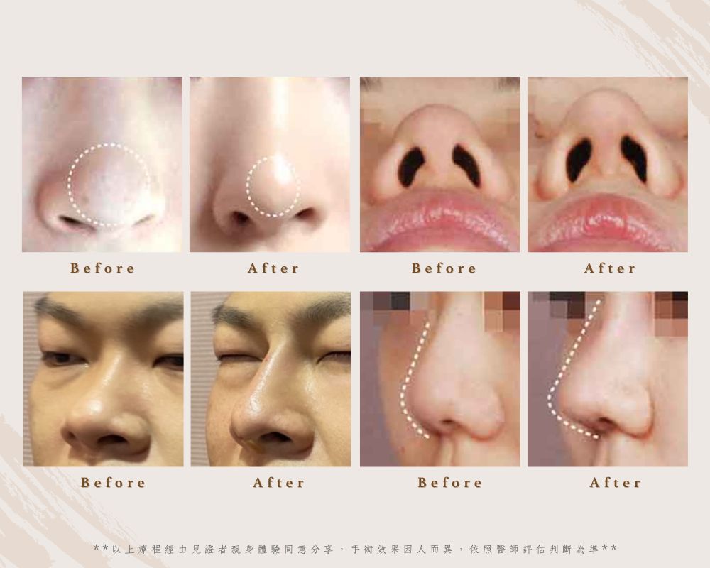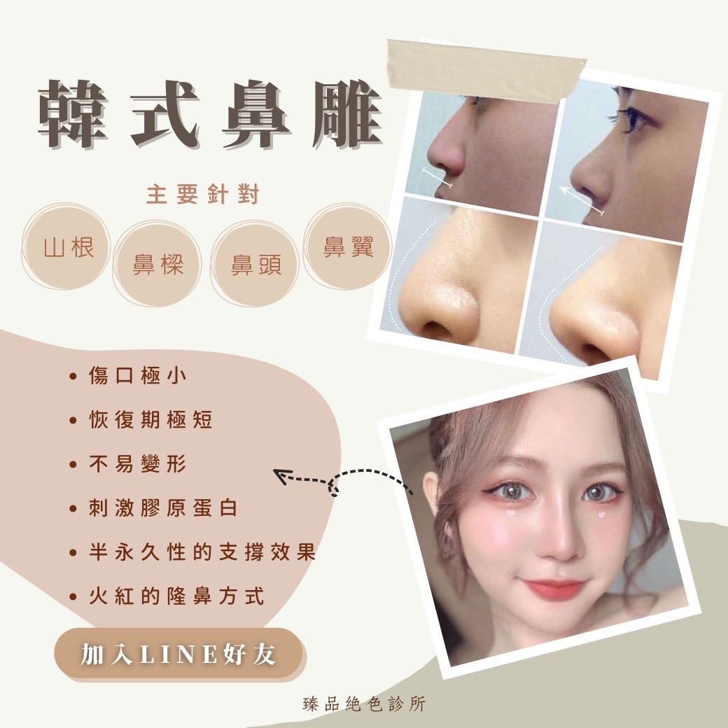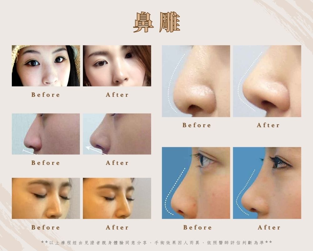 微創隆鼻有別於玻尿酸隆鼻單純墊高鼻背,線雕隆鼻可以達到矯正鼻樑、鼻小柱、鼻翼、鼻尖的作用。