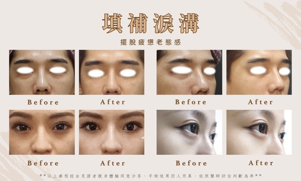 玻尿酸填補淚溝,是利用玻尿酸注射填充來改善凹陷的狀況。玻尿酸亦稱透明質酸是一種多醣體,存在於皮膚組織內,能有效增加肌膚水份,並保持肌膚彈性。玻尿酸材質柔軟,具有黏容性與伸縮性,是一種非常理想的填充物質,適合淺層注射,並且對人體沒有副作用,不會產生排斥,玻尿酸注射於真皮組織中,能修飾深淺不同的皺紋及填充凹陷部位,營造出平整、膨彈。
