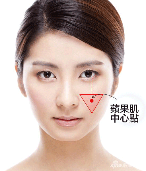「蘋果肌」的位置是在眼睛下方二公分處呈倒三角狀的組織,微笑或做表情時會因為臉部肌肉的擠壓而稍稍隆起,看起來就像圓潤有光澤的蘋果,得名「蘋果肌」。