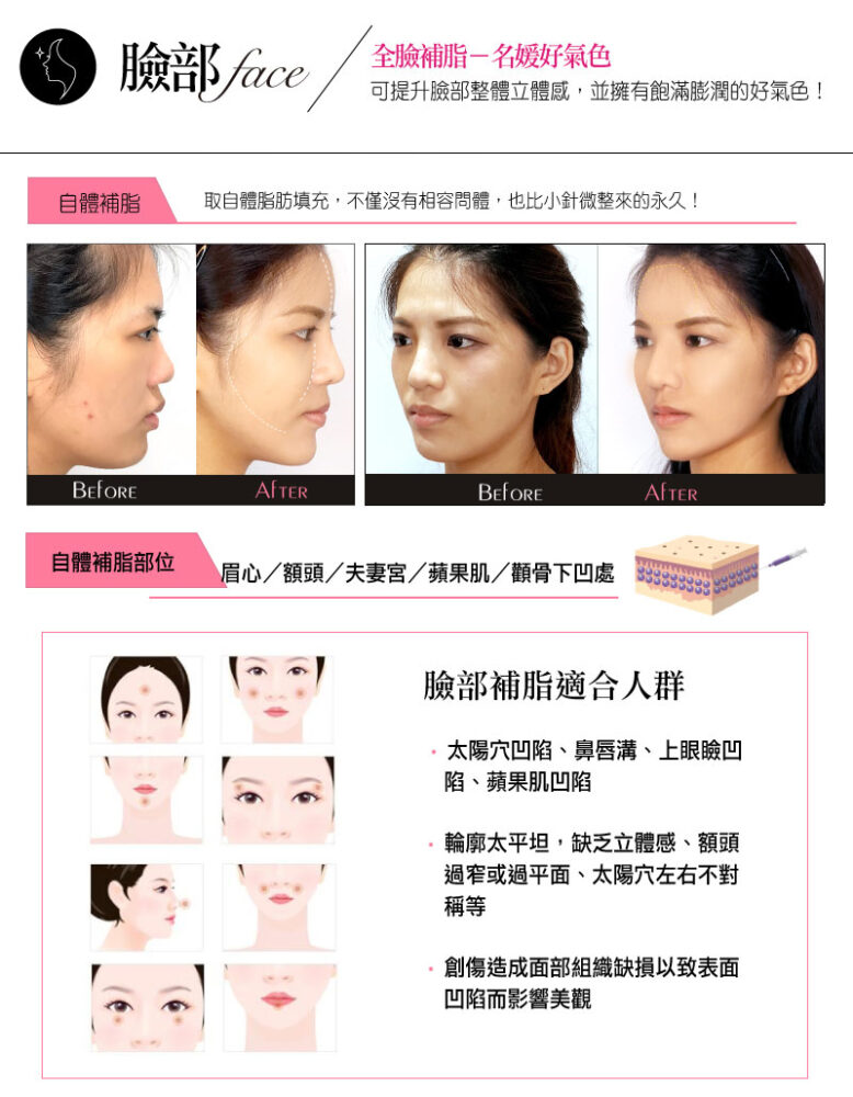 除了臉頰凹陷的人適合,中臉輪廓不立體的人更是適合,其他熱門的治療部位同樣還有夫妻宮及額頭。