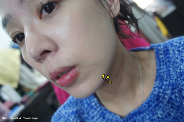 下巴那邊有一塊的感覺~~但因為還在腫,所以還不是最終的樣子唷!!