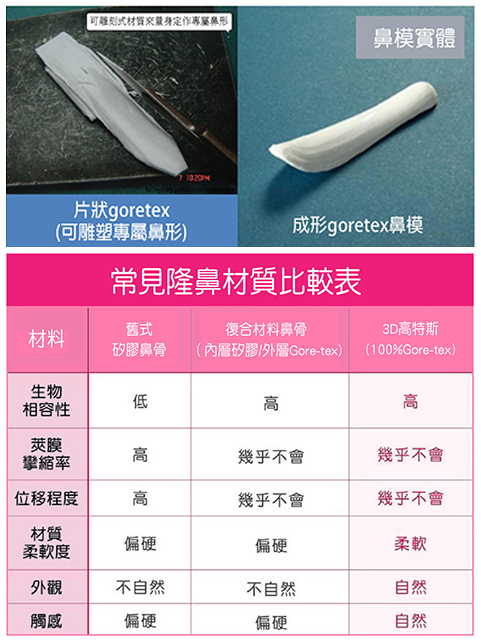 醫師說可以透過Gore-Tex三段式隆鼻來做出一個適合我的鼻型,而且用的材質也可以減少發炎排斥的狀況。