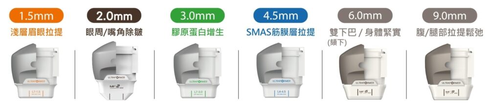 | Ultherapy 極線音波 | 美國MFU聚焦式超音波 | 1.5、3.0、4.5mm | 通過多項FDA認證,治療精準穩定 |