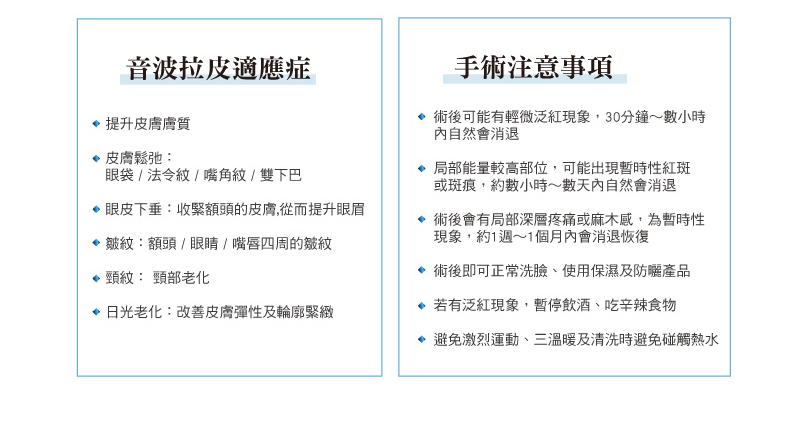 若下垂鬆弛嚴重,可考慮手術拉皮後再以音波拉提刺激皮下結構重組作為後續的維持。