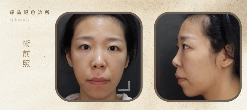 孫萬烜醫師:「我們可以看到山根比例較為不足、鼻頭較大偏蒜頭鼻的鼻形,評估後我們將山根墊起來鼻頭修高,目前常見的方式建議為植入物、搭配自己的耳軟骨還有鼻中膈,這樣三種材料去做整體的呈現。