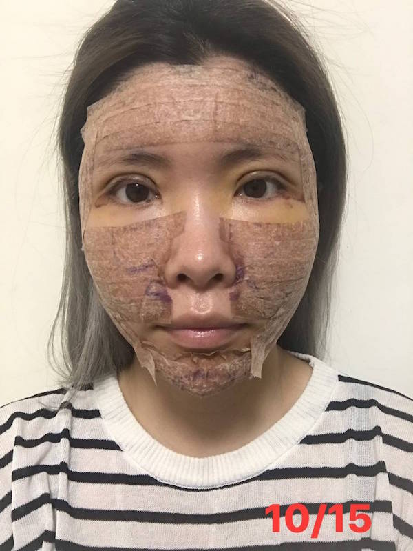 這是術後隔天的照片,臉上貼的是專用固定的膠布。