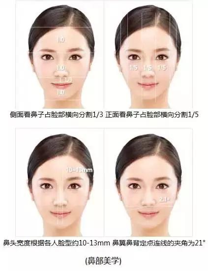塑形要全面,鼻子是一個立體的部位,所以只是墊高鼻樑、增加高度是遠遠不夠的,鼻部塑形要達到的目的是從三個角度看過去,鼻子形態都自然而有美感。從正面看,鼻子的完美比例主要是根據臉型和臉的長度來的。