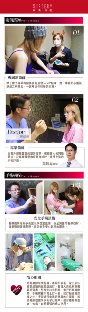這次臻品絕色診所為Stephanie量身定做的豐胸手術是果凍絨毛面的內視鏡隆乳手術,此項手術不只能一次增大2-3個罩杯,更能減少術後按摩的不適感,也能降低莢膜產生變成硬硬的假奶。