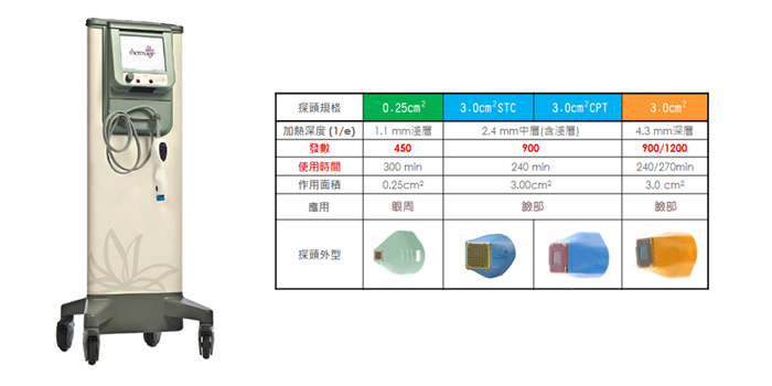 CPT電波拉皮搭載四種不同深度的探頭,針對不同的肌膚狀況達到最佳治療效果。