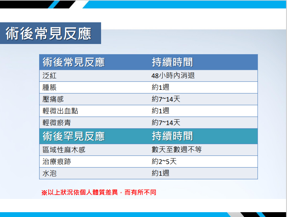 - 任何手術或療程皆會有其醫療風險,以上資訊係做為診療的輔助說明、衛生教育及醫療知識分享,僅供參考。